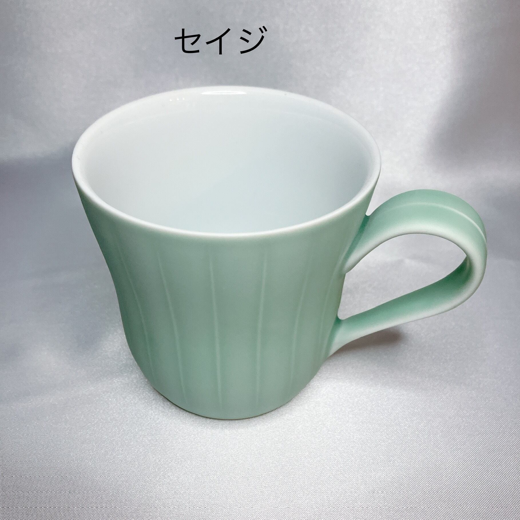 ストライプのエンボスを施した緩やかな曲線を描くフォルムに、優しい色味の釉薬のマグカップとプレート。内外での質感の違いによる楽しさ、使いやすさにこだわり、手に触れる外側は香蘭社が得意とするブラスト加工によるマットなしっとり感、内側は透明なつや感が特徴です。